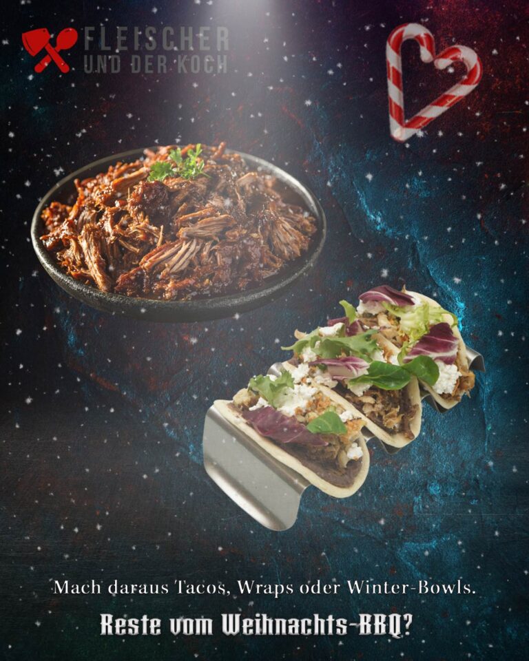Weihnachten steht für Genuss, Wärme und das gemeinsame Essen. Doch während der Braten oft Stress und Timingdruck bedeutet, bringt Pulled Pork Gelassenheit in die Feiertage. Der Low-&-Slow-Klassiker gart von selbst, lässt sich ideal vorbereiten und begeistert mit zartem, saftigem Fleisch, das sich mühelos zupfen lässt. Mit dem Pulled Pork Weihnachts-Bundle von Fleischer & Koch servierst du ein festliches BBQ-Highlight für acht Personen – ohne Hektik, ohne Improvisation.