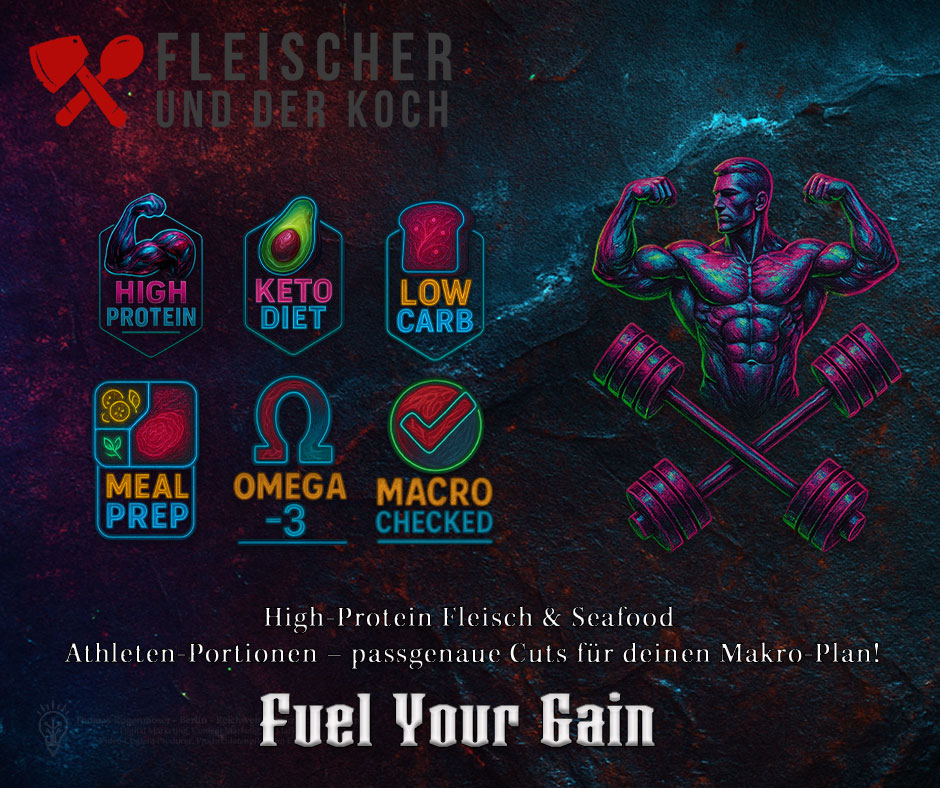 Mach keine Kompromisse: Erreiche deine Ziele mit proteinreichem Premium-Fleisch und nachhaltigem Seafood vom Berliner Meisterfleischer. Perfekte Ernährung trifft maximale Leistung – für dich und deinen Körper.