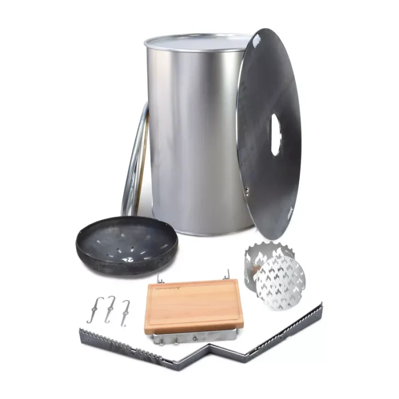 Dieses Rundum-sorglos-Paket beinhaltet alles, was Du für das ultimative BBQ-Erlebnis brauchst: eine Feuerbox, Auflageleisten, einen Grill-Einsatz, einen Wokaufsatz und einen Holzbretthalter.