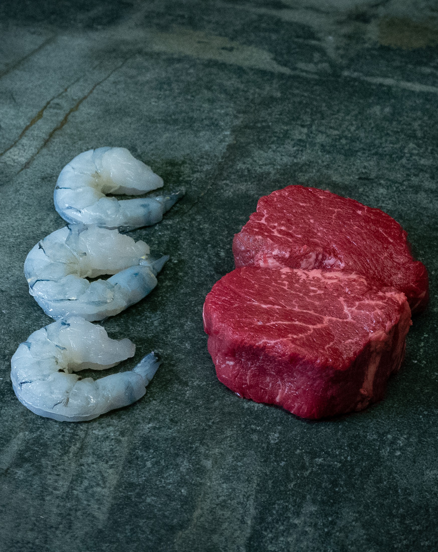 Surf and Turf Set mit Rinderfilet und Black-Tiger-Garnelen – klassische Steakhouse-Kombination